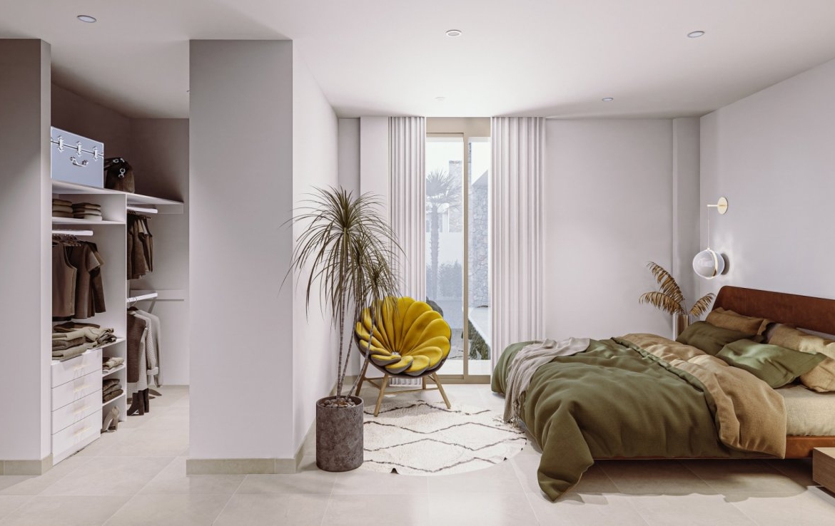 Villa de nueva construcción de una sola planta con 3 dormitorios, 2 baños y solarium privado a 500 metros de las playas de Mar De Cristal.