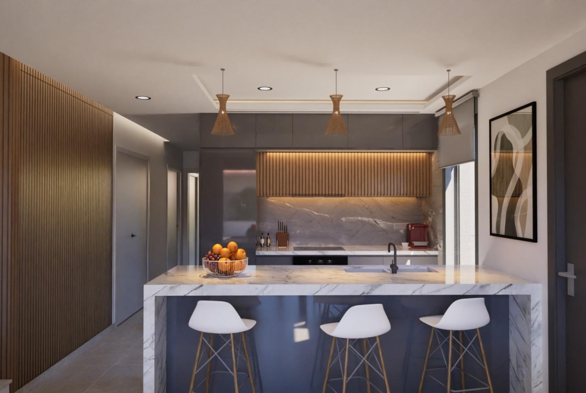 Estas exclusivas viviendas están diseñadas con interiores elegantes y funcionales, cocina totalmente equipada, electrodomésticos incluidos. Los baños disponen de mueble con lavabo y luz. Los dormitorios incluyen armarios forrados con cajoneras y cada vivienda dispone de preinstalación de aire acondicionado por conductos.